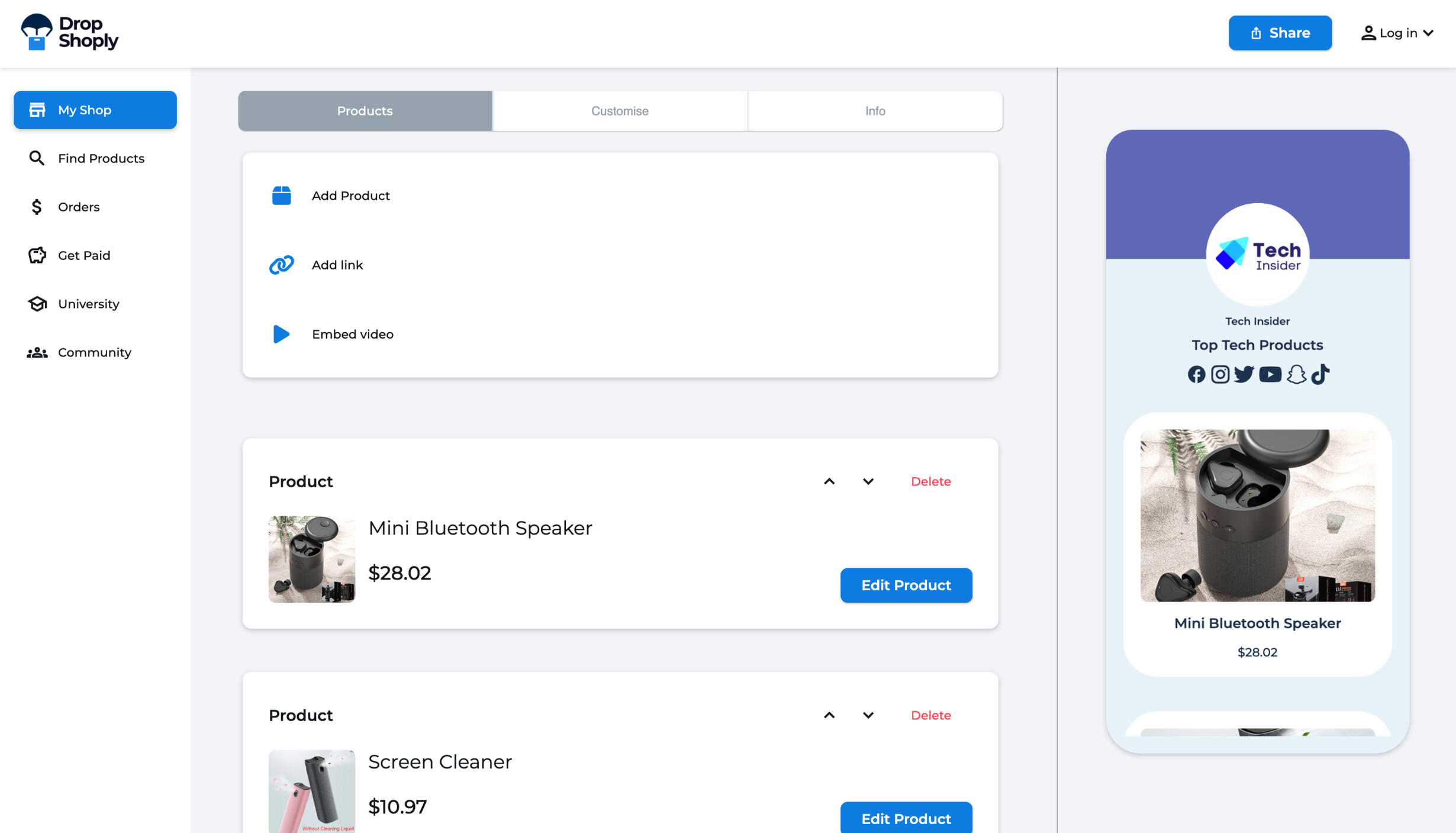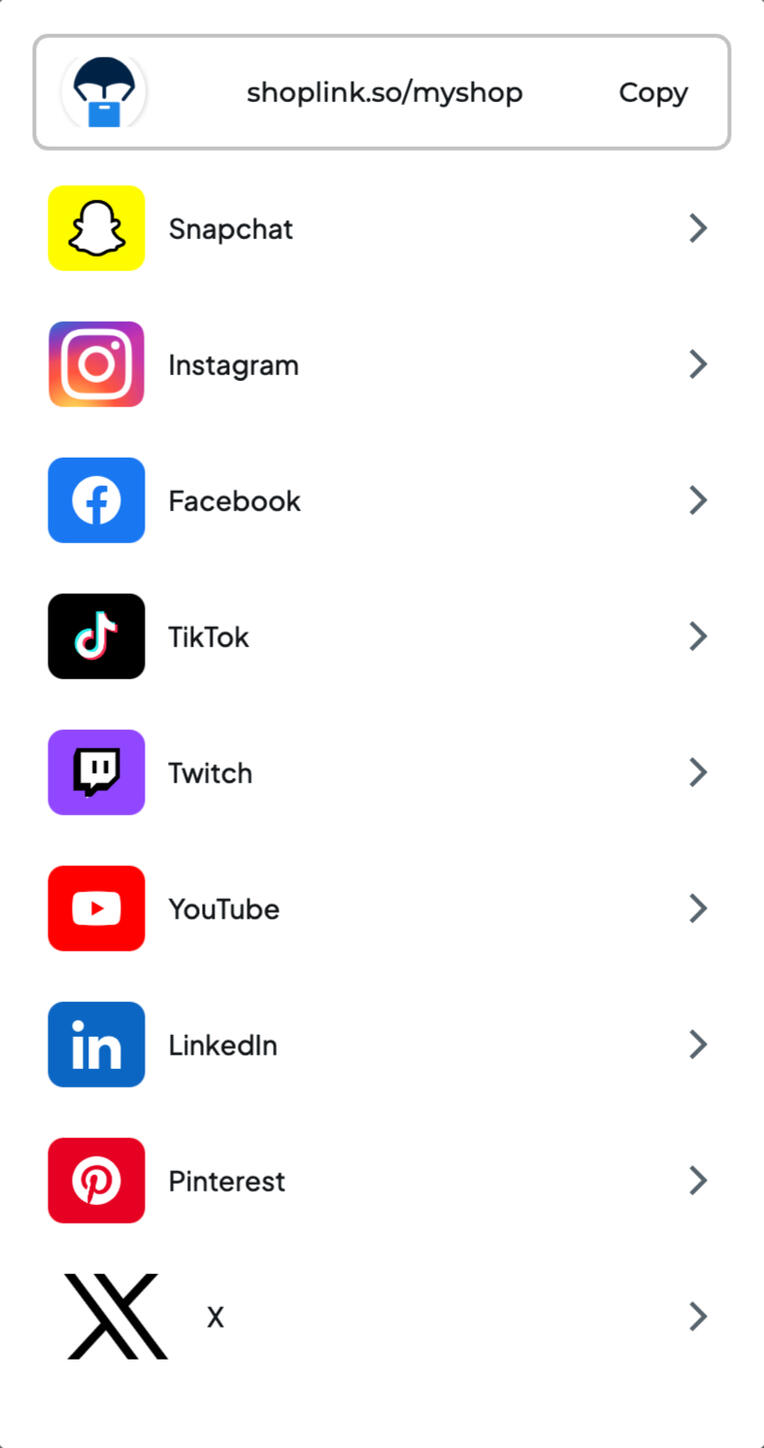 Add your unique Shop Link URL to all the platforms and places you find your audience making it easy for them to buy.