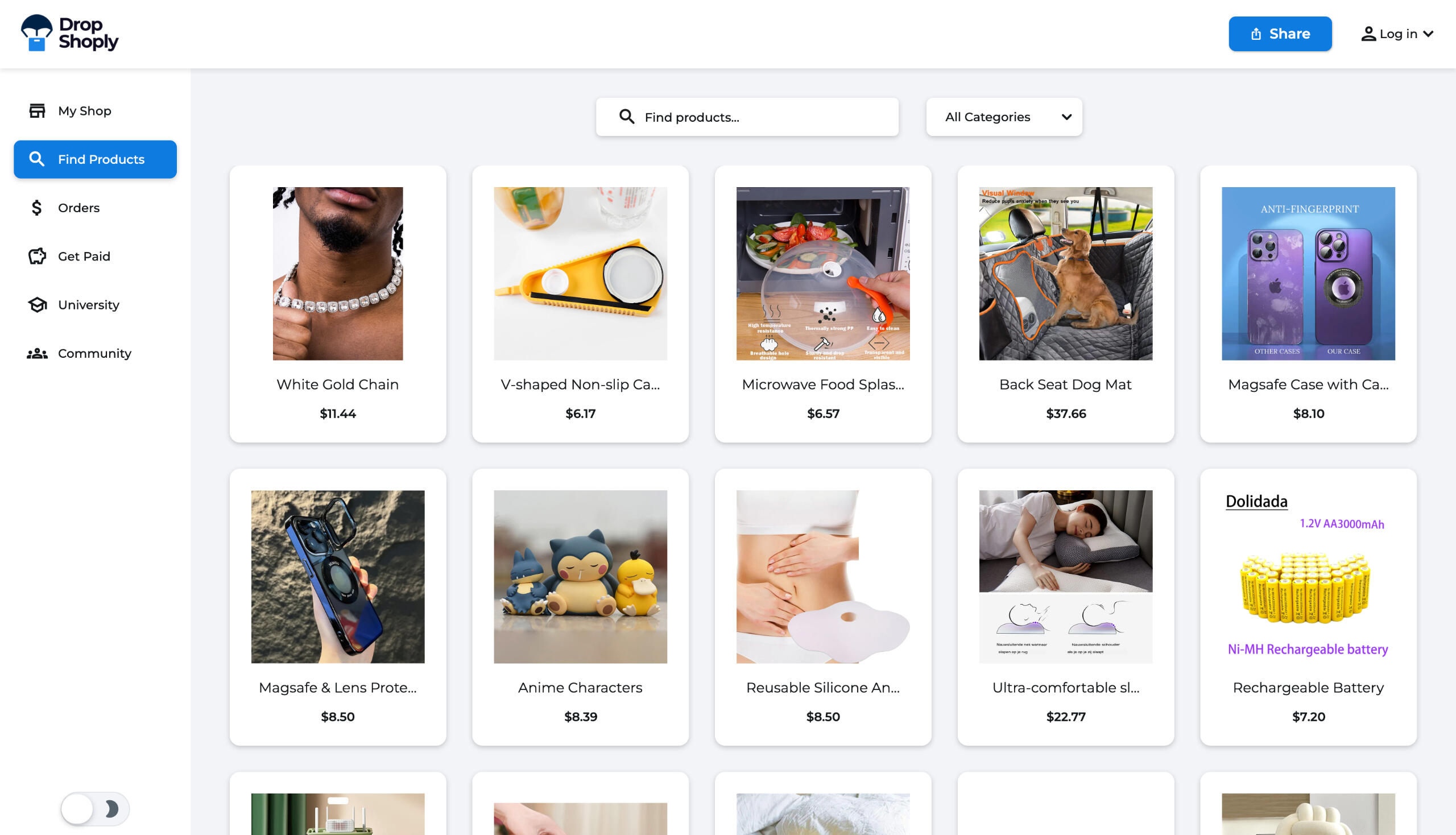 Browse through a selection of more than 10,000 products and add to your store in one click
